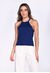 Blusa Azul Rey Con Escote Frontal Sesgado Y Manga Larga Con Puño Resortado Para Mujer
