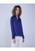 Blusa Azul Rey Con Escote Frontal Sesgado Y Manga Larga Con Puño Resortado Para Mujer