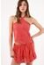 Topmark Top Halter Para Mujer De Poliéster Naranja Corte Crop Con Textura Arrugada