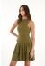 Topmark Vestido Para Mujer De Viscosa Azul Humo Relajado Con Escote Halter Anudado